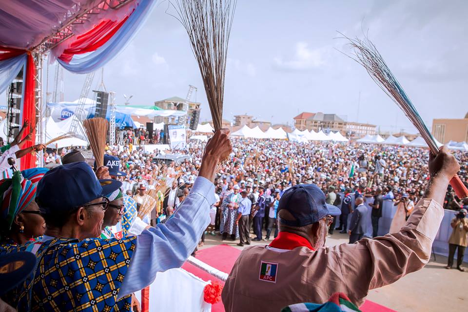 Alongside the Senate president, Bukola Saraki and other APC governors and party leaders, the Nigerian president asked the people to vote for the party’s candidate, Chief Oluwarotimi Akeredolu and they shall get federal appointments.